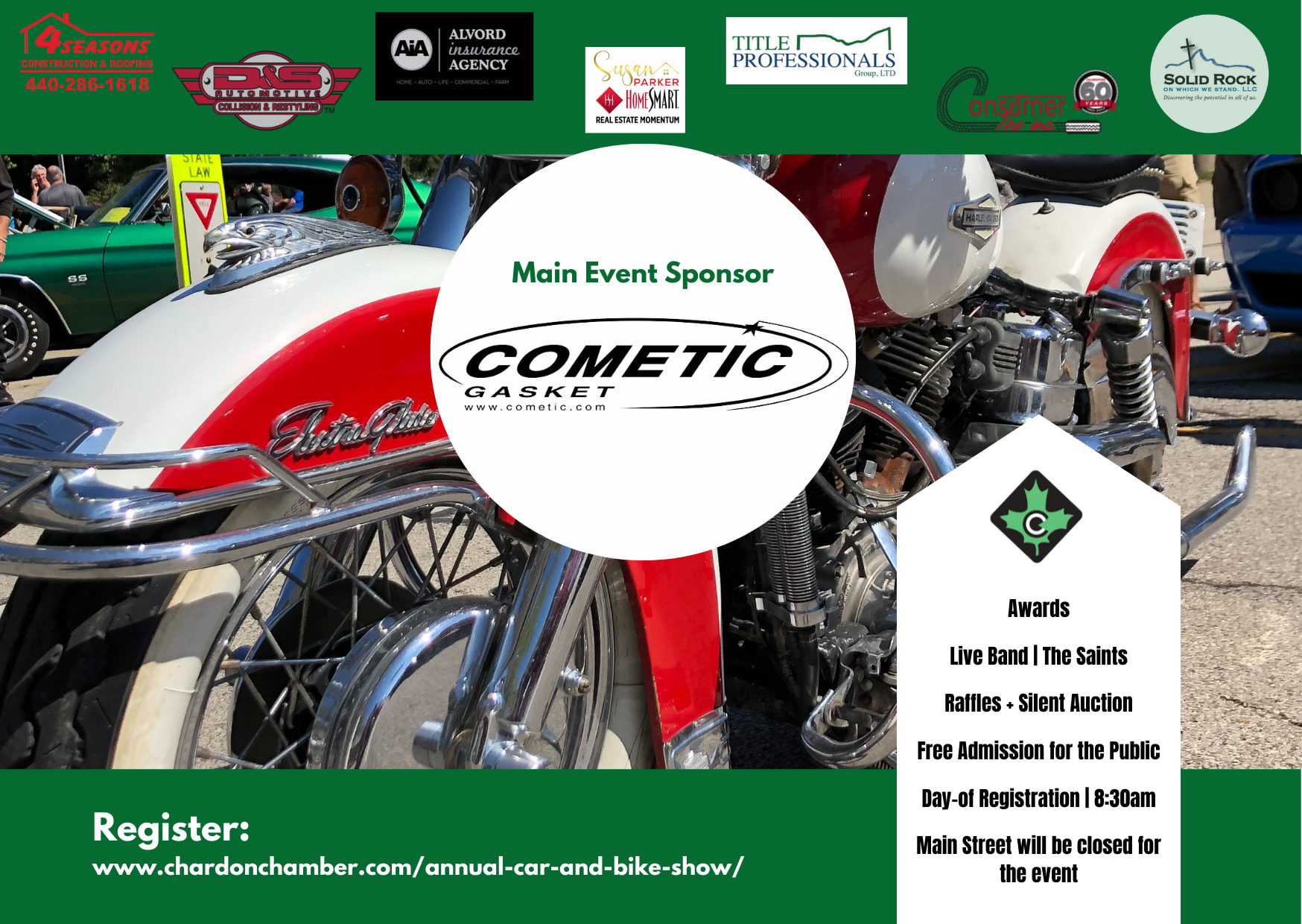 Join us for a day of classic cars, bikes, trucks, and more! $10 car registration - will receive event t-shirt + dash plaque Free to the public Raffles, Silent Auction, 50/50, food and live music