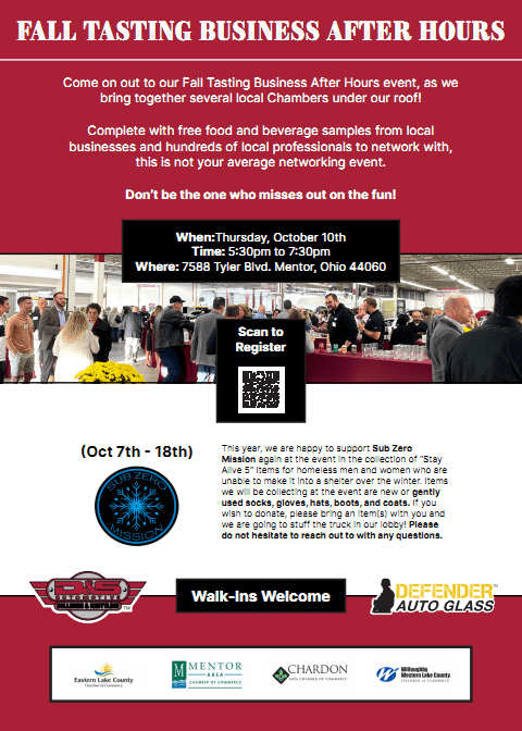 Get ready for an unforgettable evening on October 10th at the Tri-Chamber Fall Tasting Business After Hours, hosted by D&S Automotive Collision and Restyling! Mingle with top Lake County businesses and organizations while indulging in mouthwatering food and drinks from local favorites, including our very own Eleventhree Brewing and The Hambone.