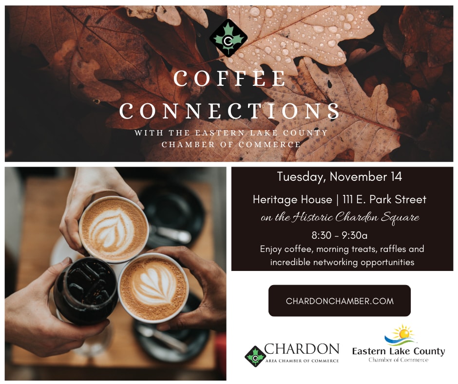 We are so excited to partner up once again with the Eastern Lake County Chamber of Commerce to bring you a valuable Coffee Networking event on Tuesday, November 14th!