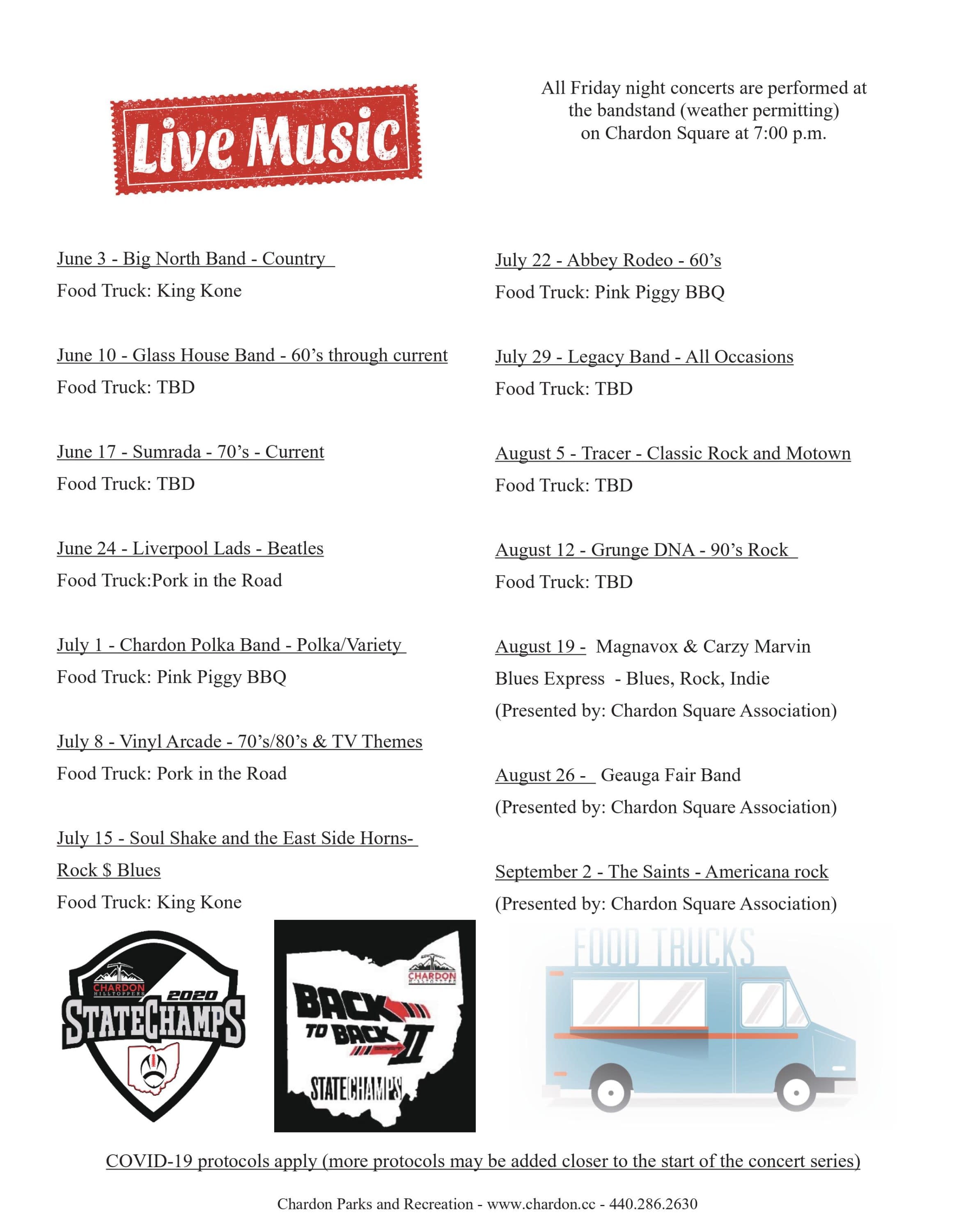 The City of Chardon is hosting their Friday concerts in the park during the summer at 7pm. Come up to the square to take in wonderful music with Grunge DNA (90s rock) during this family friendly event. Get there early to grab a bite to eat at local restaurants, or stop into one of the many shops around town. Concerts run until September 2nd so there is plenty of time to schedule a visit. See you there!Images