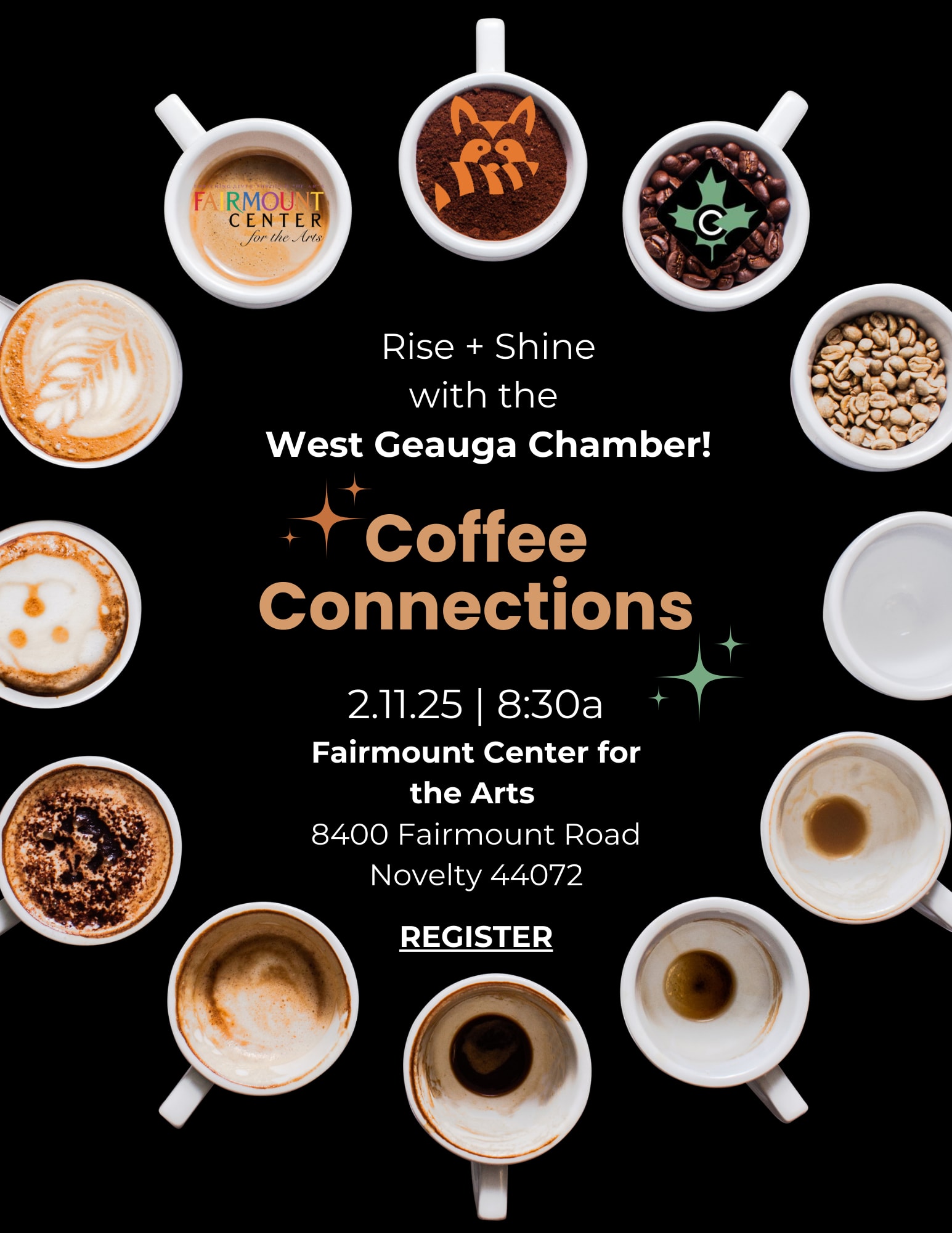 Start your day with connections that count! Join the Chardon Area Chamber of Commerce and the West Geauga Chamber for a special winter networking event at the Fairmount Center for the Arts in Novelty, Ohio. On February 11th from 8:30 to 9:30 a.m., grow your business across Geauga County while meeting fellow business members from the West Geauga Chamber. Sip fresh coffee, exchange ideas, and explore collaboration opportunities with dynamic professionals from the area. Plus, don’t miss your chance to win a fabulous raffle prize!