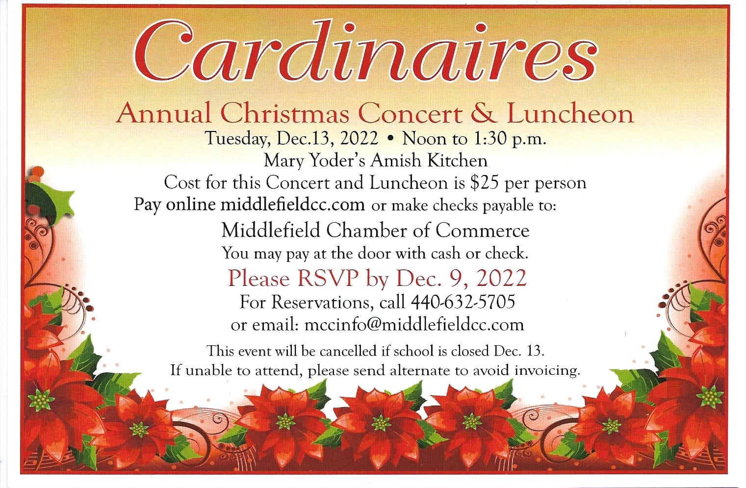 Please join the Middlefield Chamber for the Cardinaires Annual Christmas Concert & Luncheon