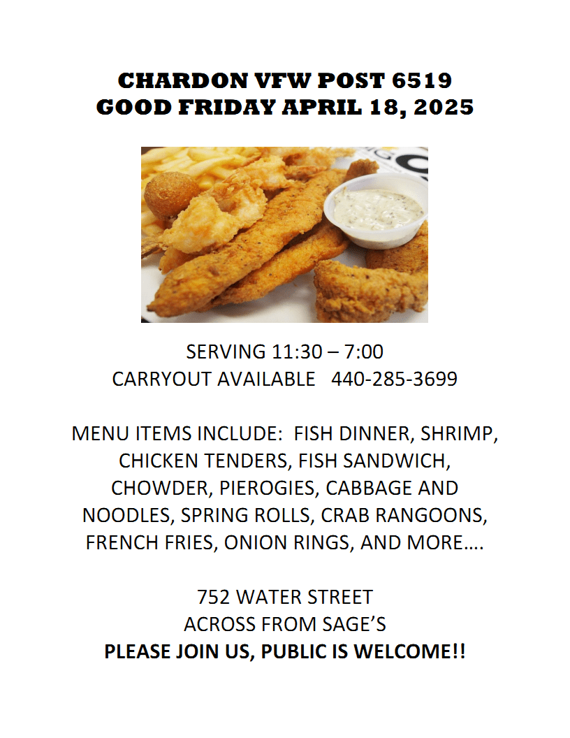 Call ahead to place your carry-out order: 📞 (440) 285-3699 We look forward to serving you this Good Friday!