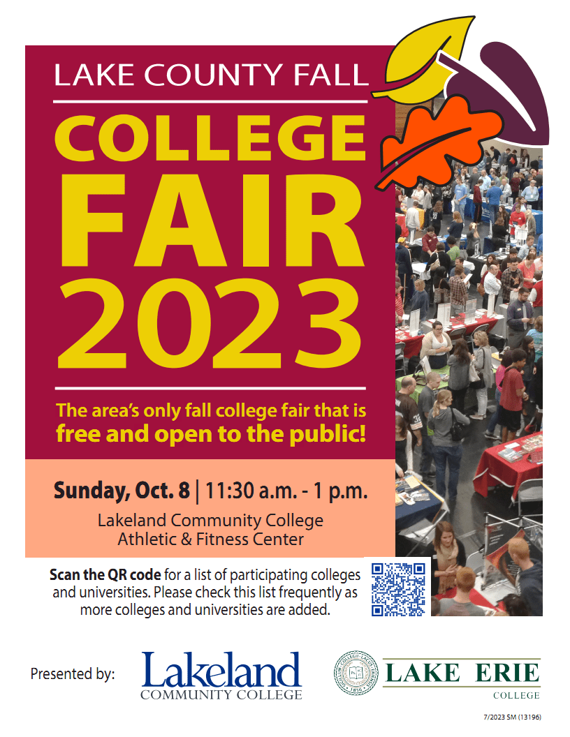 Co-sponsored by Lakeland Community College and Lake Erie College, the Lake County Fall College Fair is held in the Athletic and Fitness Center on Lakeland Community College's campus. This annual event is free and open to the public. Students are offered the opportunity to speak with representatives from participating schools and ask questions regarding programs offered at that particular college or university. For more information and to find a list of participating colleges, please click HERE