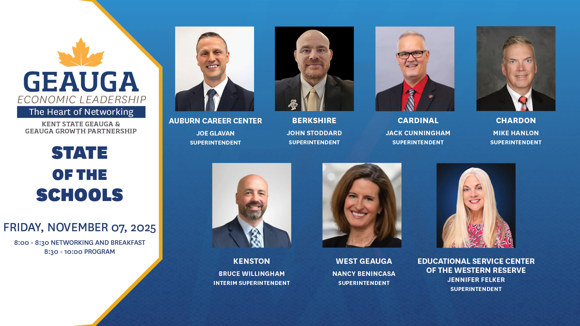 Join us for the Annual State of the Schools, part of the Geauga Economic Leadership (GEL) Breakfast series and co-hosted with Geauga Growth Partnership, Inc., for an insightful discussion on how AI is transforming education in Geauga County.
