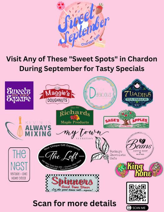 Our friends over at Chardon Restaurant Week are now rolling out Chardon Eats which will be bringing you Sweet September. They are highlighting the shops, bakeries and other great businesses that can bring you fun and tasty things to munch on. Taking place throughout the entire month of September, stop into participating shops to support them and find out what deals and promotions they may have for you! 'Chardon Eats is a newly formed extension of Chardon Restaurant Week which was established in April of 2021 as a community outreach effort to show support of our local restaurants. As CRW has grown over the past 3 years into a true community event, the committee that puts together 'Restaurant Week' has decided to add 2 additional events into the mix. 'Sweet September' will feature the 'sweet spots' in Chardon. We will be highlighting these establishments for the entire month along with participating businesses hopefully offering their own special promotions for people to enjoy all September long! Chardon is a small community with a BIG heart! For any local business to flourish it first needs community support to keep them strong. We hope you will enjoy these upcoming new events to celebrate our town and to support small business.Images